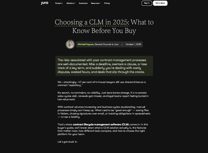 Choosing a CLM in 2025: What to Know Before You Buy With contract volumes increasing and business cycles accelerating, manual ...