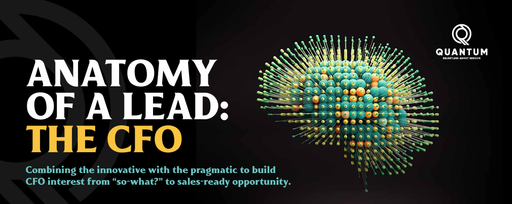 This CFO persona infographic is part of Quantum Marketing’s “Anatomy of a Lead” series. It is designed to illuminate the role each B2B stakeholder plays throughout the buyer journey. Focused specifically on the Chief Financial Officer, the content highlights how the CFO evolves from passive observer to critical decision-maker across three key stages: Discover, Compare, and Select.