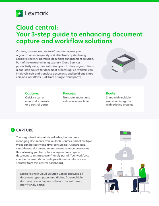 Cloud central: Your 3-Step guide to enhancing document capture and workflow solutions Capture, process, and route information across your organisation ...
