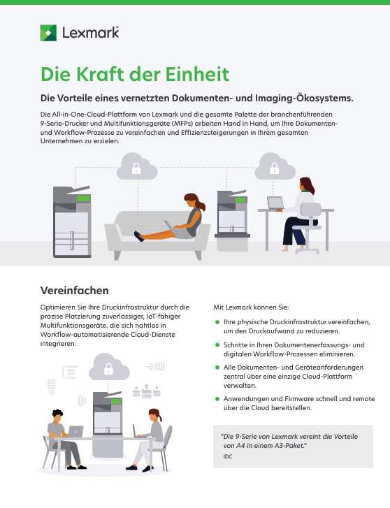 Die Kraft der Einheit Die Vorteile eines vernetzten Dokumenten- und Imaging-Ökosystems. Die All-in-One-Cloud-Plattform von Lexmark und die gesamte Palette der ...